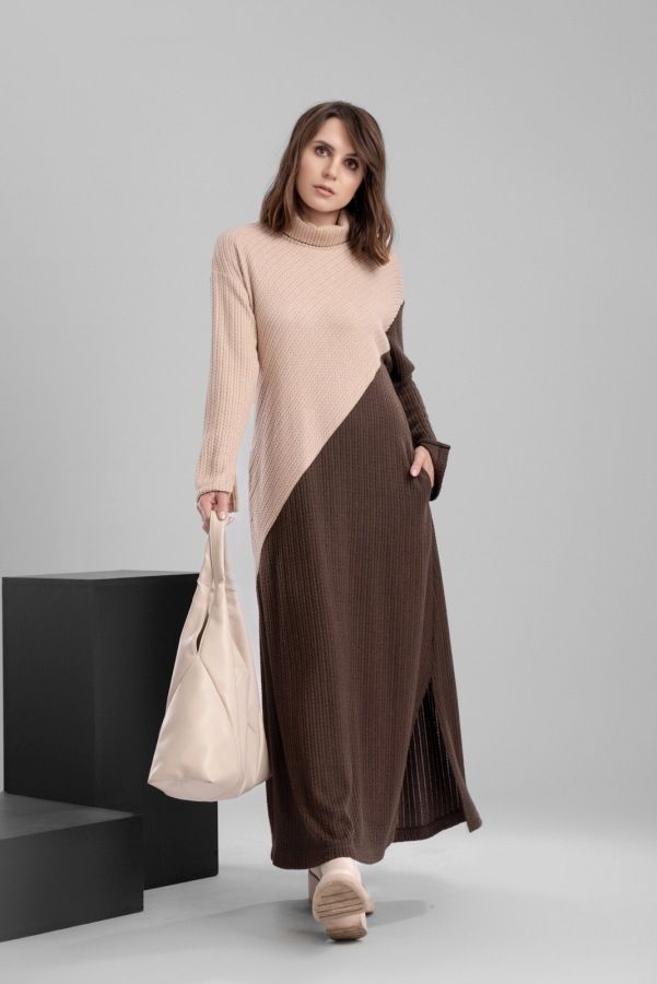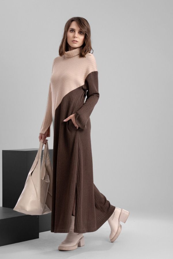 Платье женское миди А-силуэта из трикотажного полотна контрастных цветов.