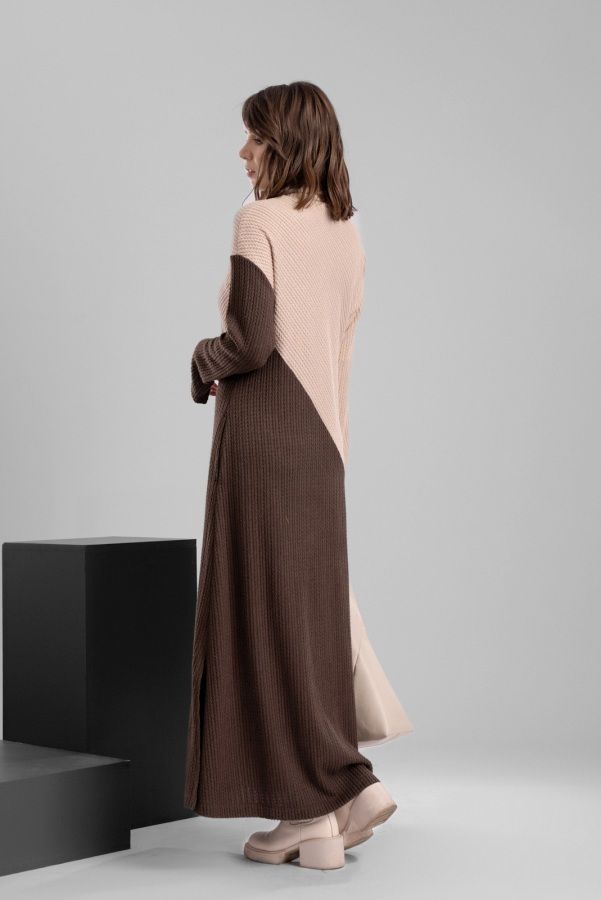 По переду и спинке диагональный подрез, разделяющий платье на светлую и темную половины.
