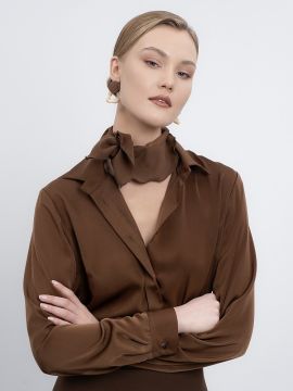 Блуза приталенного кроя. Галстук отстёгивается. Застежка пуговицы. Состав 15% Хлопок, 83% ПЭ, 2% Эластан.