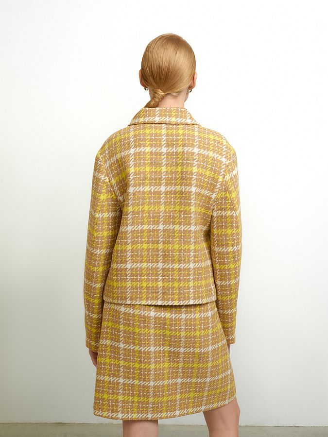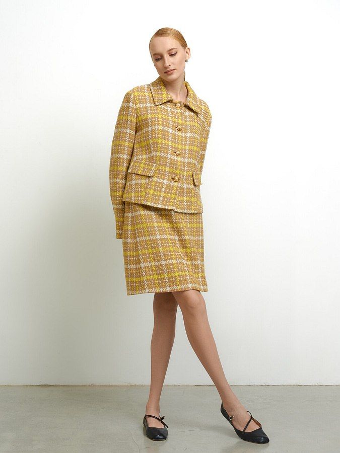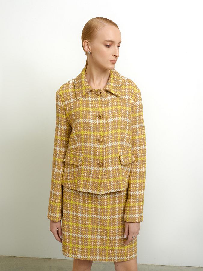 Короткий твидовый жакет прямого силуэта.