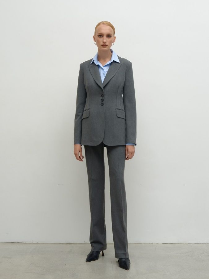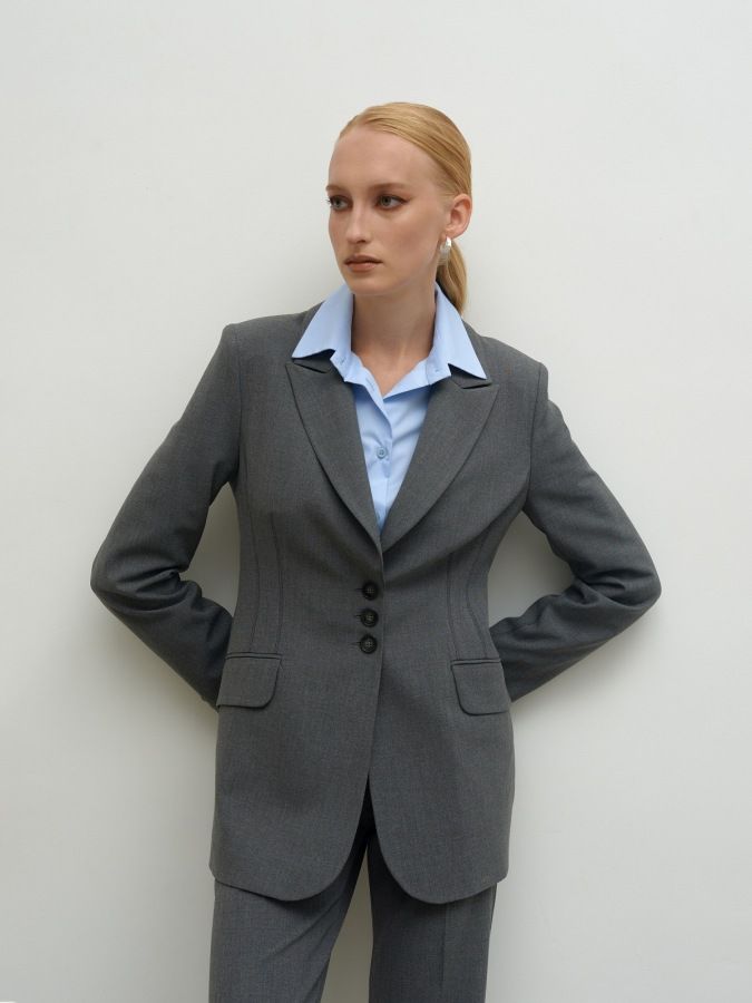 Приталенный серый жакет
