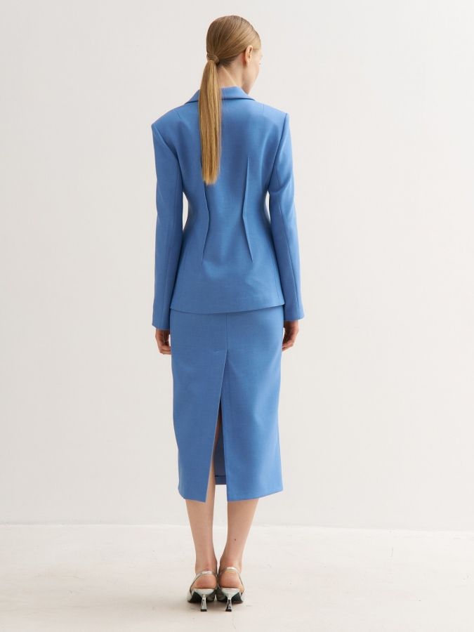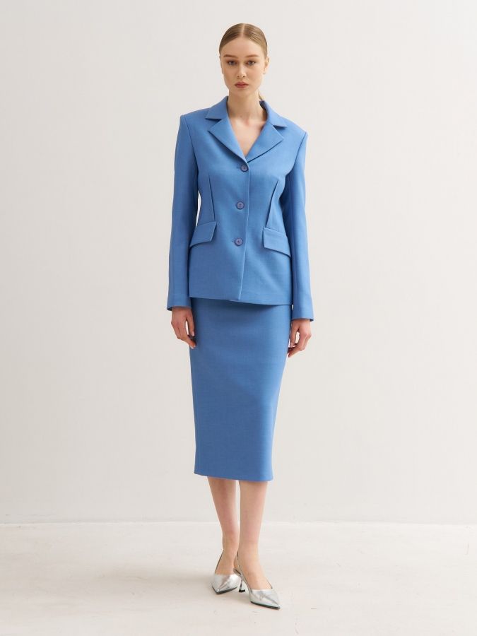 Детали | Однобортный, с длинным рукавом, воротником и лацканами. На подкладке, с застежкой на три пуговицы. Боковые прорезные карманы в «рамку» с клапанами. С вытачками «наружу» спереди и сзади.
