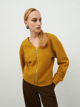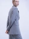 С длинным рукавом, воротником и лацканами. На подкладке с застежкой на две пуговицы. Боковые прорезные карманы в «рамку» с клапанами. Край борта, лацкан, воротник и низ жакета выполнен срезом наружу с двойной отстрочкой.