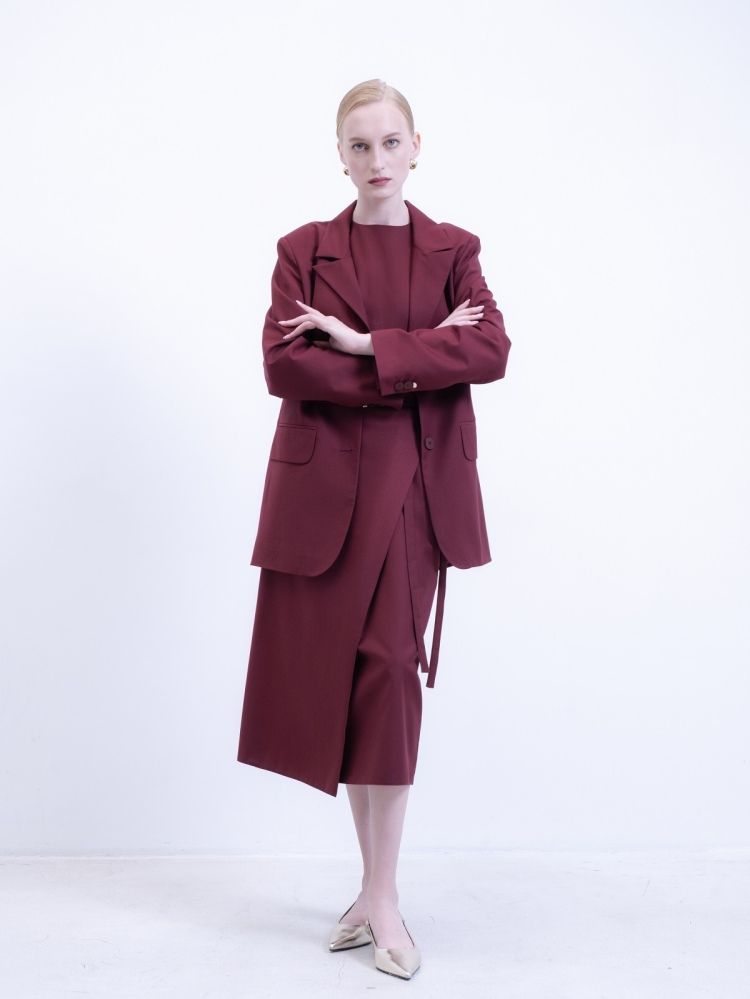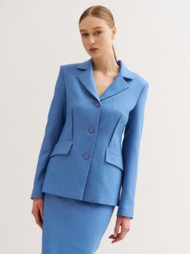 Жакет - оверсайз Однобортный с длинным рукавом, воротником и лацканами. На подкладке с застежкой на две пуговицы. Боковые прорезные карманы в «рамку» с клапанами. Край борта закруглен. По спинке и рукаву шлицы. Декоративный карман в рамку на правой стороне спинки.