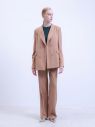 Двубортный песочный жакет - блейзер прямого силуэта.