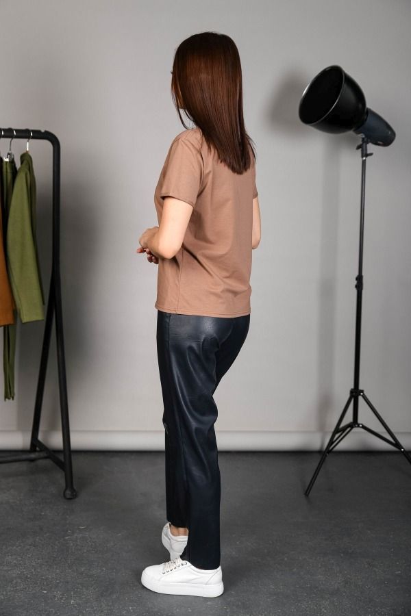 Футболка из хлопкового трикотажа высокого качества. Втачной рукав обработан отворотом. Длина достаточна для того, чтобы носить ее в свободном или заправленном виде.