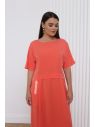 Летнее платье в стиле бохо. Свободный интересный силуэт. Округлая горловина. Рукава кимоно. Складки и карманы добавляют платью функциональности. Разрез в среднем шве спинки. Украшение на полочке-металлическое кольцо с репсовой лентой. Длина миди.