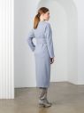 Платье из костюмной ткани. Прямой силуэт. Рукава полуреглан. . По центру шов, снизу высокий разрез. Платье украшант конструктивный пояс с пряжками. В боковых швах карманы. Длина платья-миди.