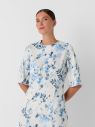 Романтичное платье длины миди отрезное под грудью со сборкой. Втачной рукав деликатно прикрывает локоть. Вертикальные рельефы вытягивают силуэт. Разрез придает кокетливости. Платье выполнена из нежной вискозы с шелковистым переливом. Флористический принт эффектно выполнен в сложном переходе сине-голубых тонов на фоне ванильного цвета, добавляя образу романтичности и свежести. Эта модель станет идеальным дополнением вашего гардероба, подходящим как для повседневных, так и для особых случаев.