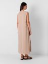 Платье А-силуэта из модала с фактурой «в рубчик» — изящная и комфортная модель для жарких дней. Ткань мягкая и приятная к телу, а базовый бежевый оттенок делает платье универсальной основой для летнего капсульного гардероба. Благодаря рельефным линиям и элегантным разрезам, силуэт визуально вытягивается и стройнит фигуру. Нагрудные вытачки обеспечивают отличную посадку, а контрастные пуговицы формируют выразительный акцент на талии. Модель с округлой горловиной, застёжкой на пуговицу по спинке и без рукавов идеально подойдёт для тёплого сезона. Это летнее платье без рукавов, относящееся к категориям однотонных и повседневных платьев, которое будет уместным как для прогулок, так и для офиса или отпуска.