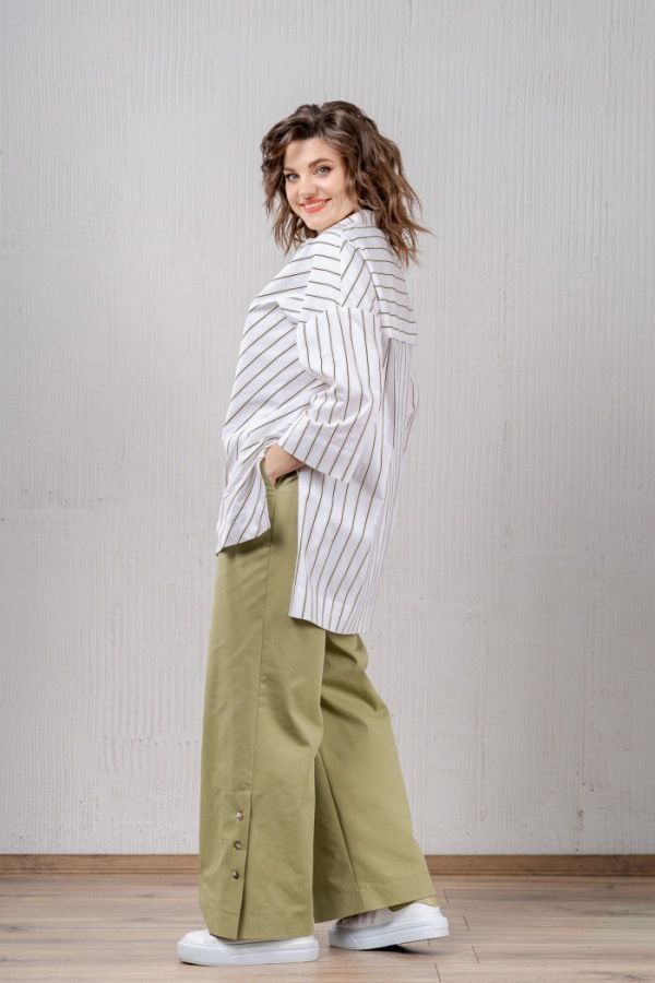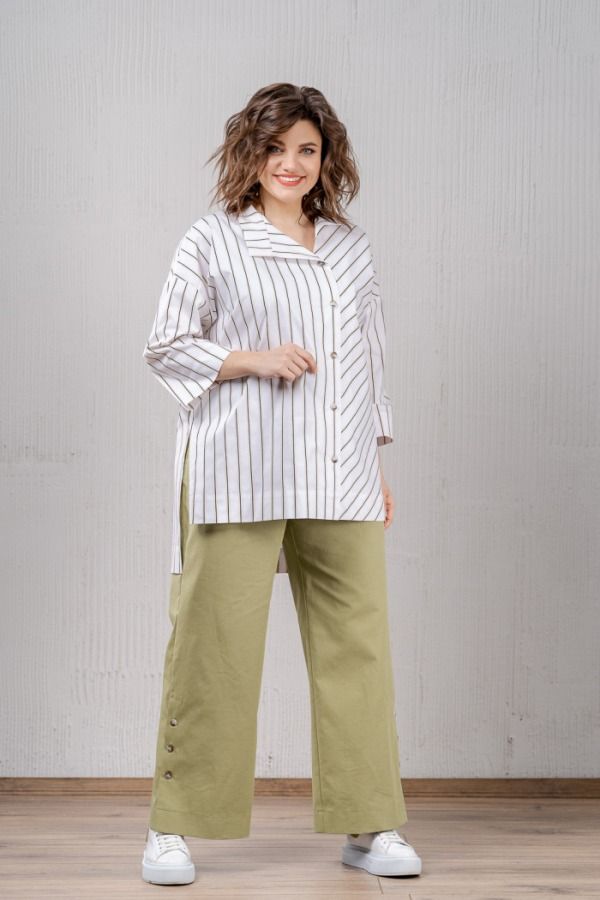 Материал: Блуза: Хлопок-69%, ПЭ-23%, лен-5%, эластан-3%; Брюки: Хлопок-72%, ПЭ-26%, эластан-2%
