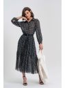 Платье женское свободного покроя из шифона на мягкой трикотажной подкладке. Воротник рубашечного типа, застежка на петли и пуговицы до линии талии. Рукав втачной по низу с сборкой на манжет.