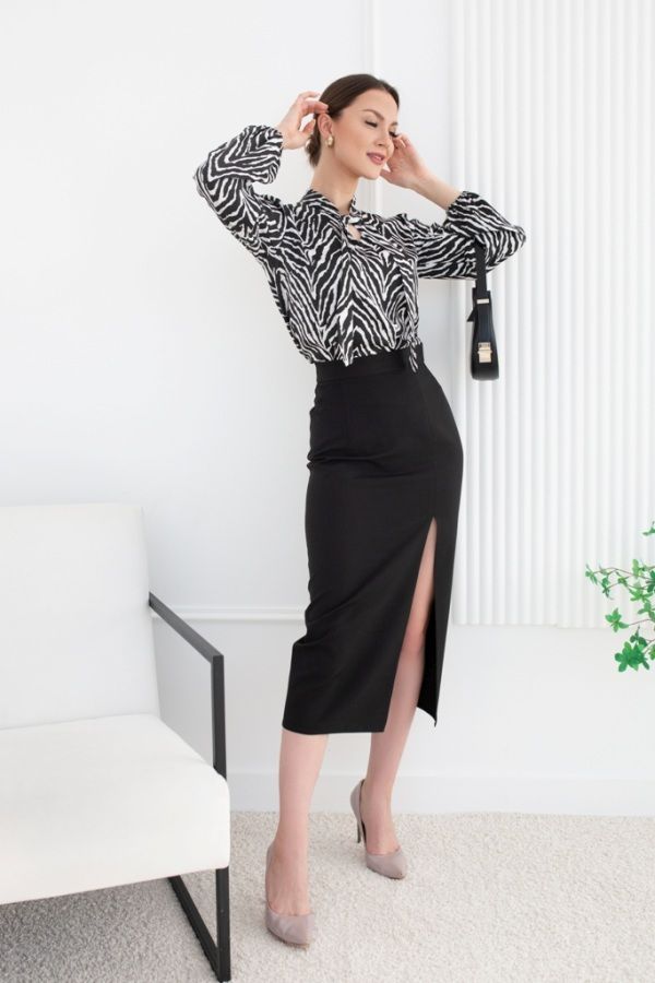 2940401 Брюки прямые с разрезами по низу передних половинок, черные
