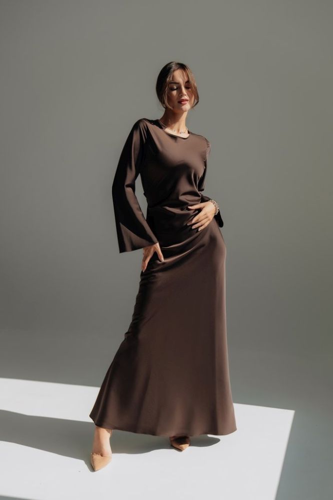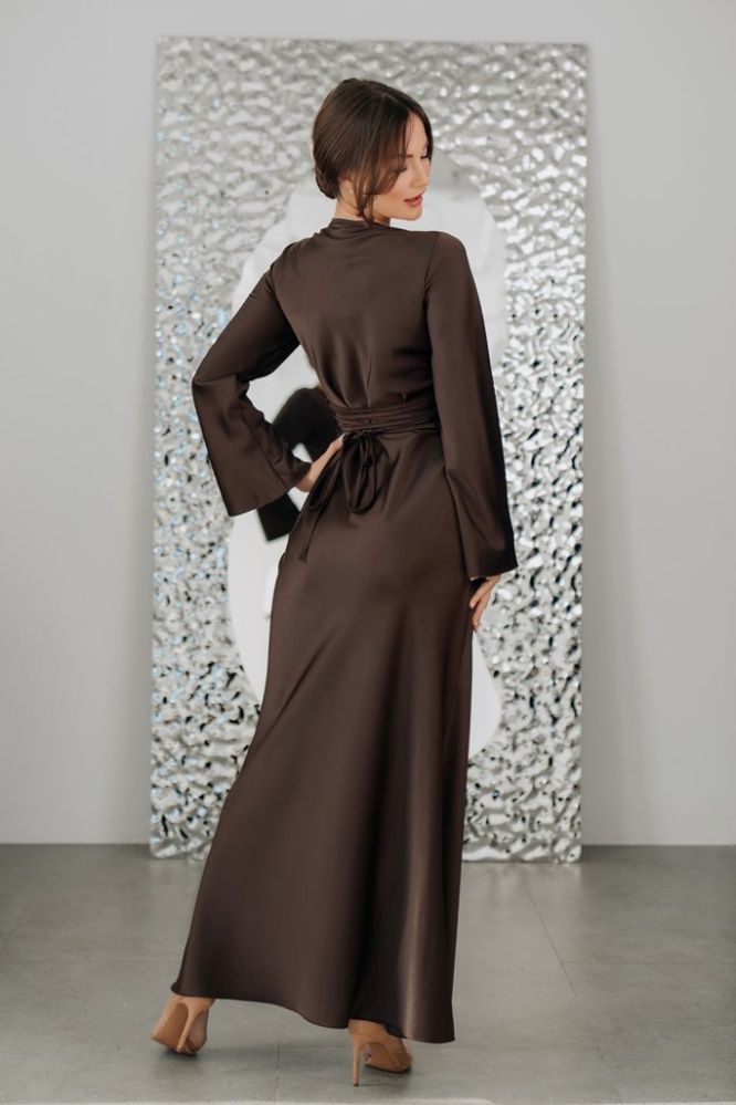 2409021 Платье шоколад Амайя (с шнуровкой)(шелк) FARBERRY