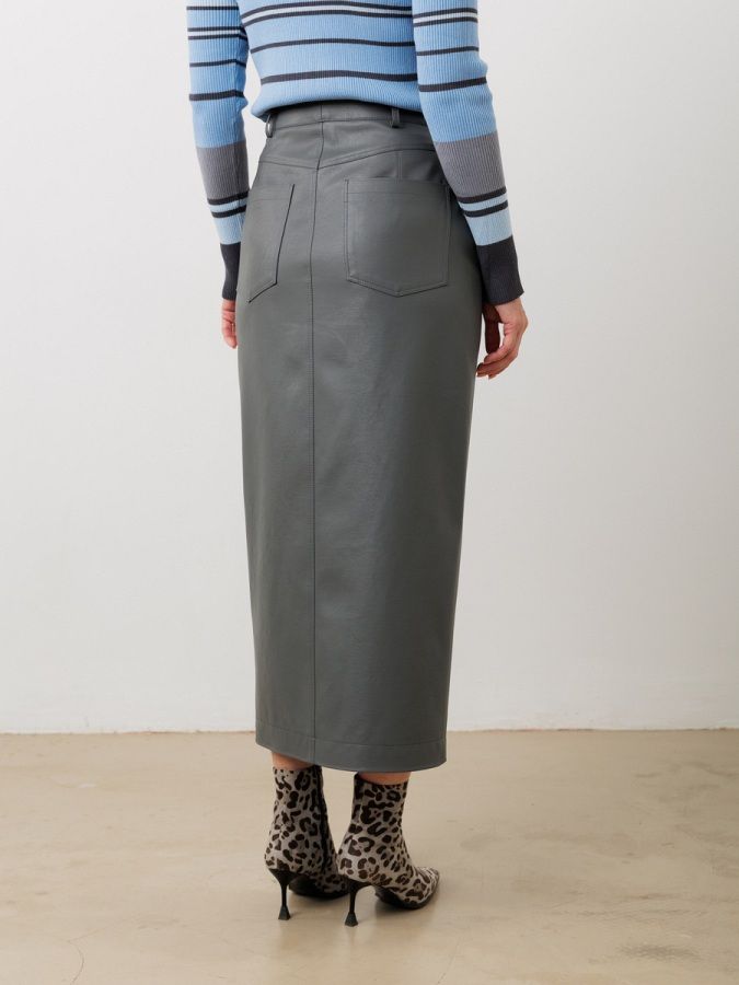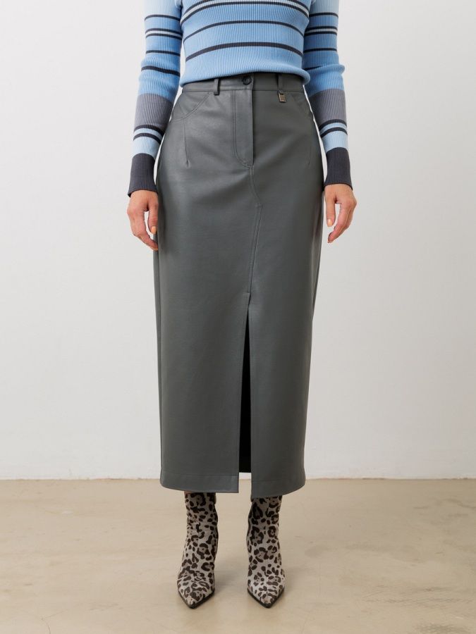Юбка из эко-кожи. Прилегающий силуэт. Спереди фигурный рельеф.