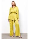 Блузка в стиле city chic выполнена из сатинового полотна с благородным блеском. Модель свободного кроя, со спущенной линией плеча и закруглённым к боковым швам низом. Спереди предусмотрена потайная застежка на декоративные пуговицы, а по спинке две складки, направленные от кокетки. Воротник отложной на стойке; рукава втачные длинные на застёгивающейся манжете. Длина по спинке 78 см; длина рукава (от горловины) 75 см.