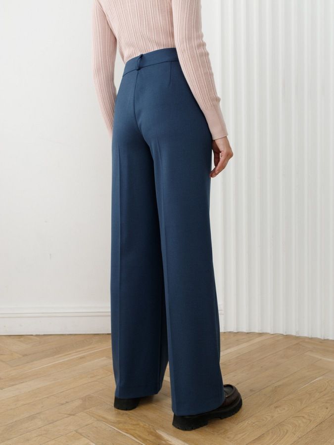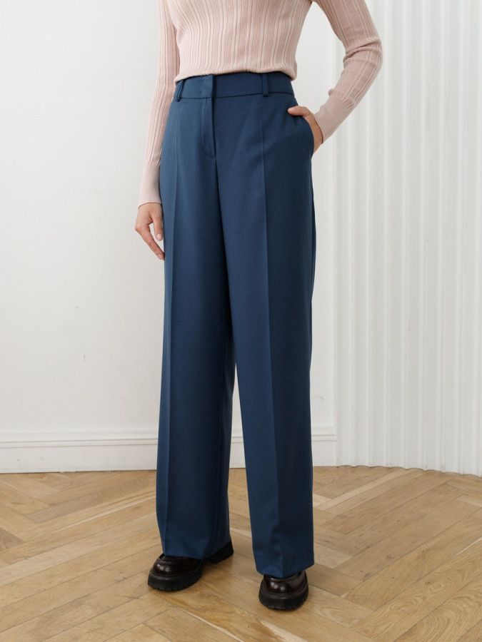 Брюки из костюмной ткани. Прямого силуэта. Со стрелками. Пояс со шлёвками под ремень. Застёжка на молнию и крючки. Боковые карманы. Полная длина.
