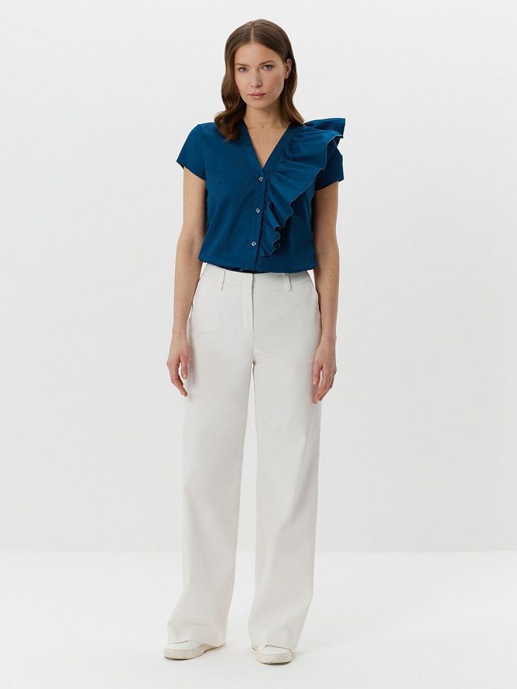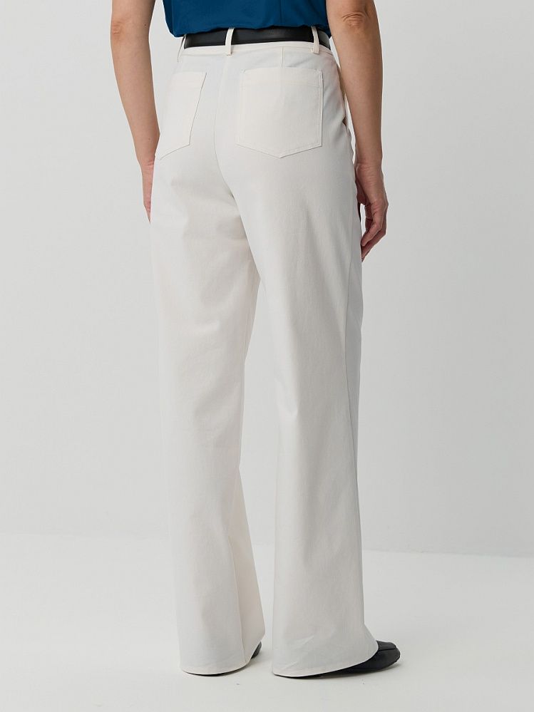 Брюки прямого силуэта — гармоничный симбиоз классики и кэжуал стиля, выполненные из хлопкового денима с добавлением эластана. Модель в оттенке айвори — это элегантная альтернатива классическим джинсам, которая легко впишется в повседневные и деловые образы. Средняя посадка, лаконичный крой и актуальный прямой силуэт обеспечивают комфорт и безупречную посадку. Накладные карманы не только практичны, но и визуально подчёркивают фигуру, добавляя лёгкий акцент на линии бёдер. Эти однотонные брюки из денима отлично сочетаются с топами, рубашками, жакетами и станут стильной базой для вашего капсульного гардероба. Модель формирует продуманный комплект с жакетом (2.3.3-900) и корсетом-жилетом (2.9.3-425) — идеальное решение для создания современного и сбалансированного лука.