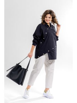 2940401 Брюки прямые с разрезами по низу передних половинок, черные