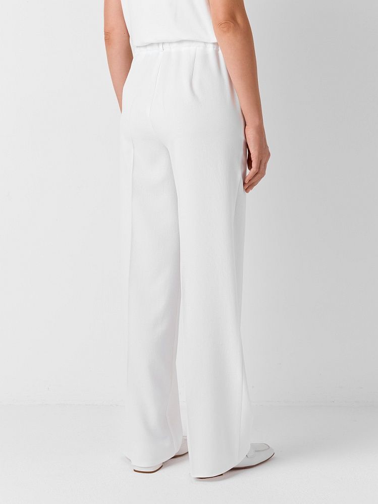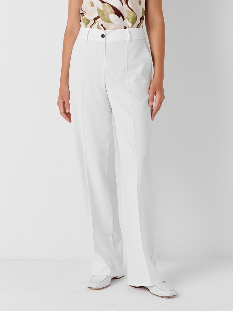 Базовые брюки прямого кроя из смессового льна в молочном оттенке. Модель дополнена карманами и стрелками, резинка в поясе и вытачки по спинке обеспечивают идеальную посадку по фигуре. Брюки составляют костюм с жакетом 2.3.2-94, а также отлично сочетаются с жилетом 2.9.3-422 или рубашкой 2.73.1-863.