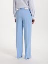 Брюки прямого кроя гармонично сочетают классический пошив и тонкую костюмную ткань небесно-голубого тона. В сочетании с рубашеой или свитшотом сформируют эффектный деловой сет.