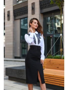 2940401 Брюки прямые с разрезами по низу передних половинок, черные