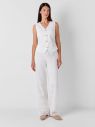 Брюки прямого силуэта из смессового хлопкового кружева с геометрическим орнаментом. Модель выполнена на тонком нежном подкладе из натурального хлопка. Вытачки по спинке и пояс на резинке обеспечивают идеальную посадку изделия по фигуре. Брюки комплектуются жилетом 2.9.3-422 из той же ткани, а также отлично сочетаются с жакетом 2.3.2-94 и топом 2.71.3-363.1.