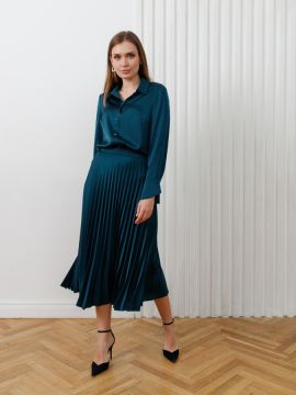 Брюки прямого силуэта из мягкого пластичной ткани. Застёжка на брючную молнию и крючок. Съёмный пояс с пряжкой. Брюки полной длины. Составляют комплект с рубашкой 2.73.1-238.2.