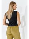 Джемпер выполнена из трикотажного полотна высокого качества, обладающего рядом положительных свойств: мягкость, эластичность и устойчивость к деформации. Модель полуприлегающего силуэта, без рукава. Деталь переда с фигурным вырезом от плеча в виде капельки. Горловина и проймы обработаны узкой бейкой