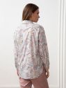 Рубашка из принтованной вискозной ткани. Прямой свободный силуэт. Спущенное плечо. Рубашечный воротник на стойке. Застёжка спереди на пуговицы. По низу рукавов манжеты с пуговицами. Фигурная линия низа. Длина модели до линии бёдер.