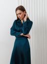 Рубашка нарядная из атласа. Прямой силуэт. Рубашечный воротник на стойке. Втачные рукава с фигурными интересными манжетами. Застёжка на пуговицы. Длина до линии бёдер. Составляет комплект с юбкой 2.4.6-808.