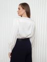 Блуза из искусственного шёлка. Материал-мягкая ткань с матовым блеском. V-образный вырез. На плечах кокетки с защипами. Рукава с манжетами на пуговицах. По бокам разрезы. Длина модели до линии бёдер.