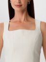 Корсет из хлопкового денима с добавлением эластана в базовом оттенке айвори — актуальный элемент капсульного гардероба и стильная альтернатива классическим жилетам. Форма каре-образного выреза, выразительные рельефы и фигурная линия низа изящно подчёркивают силуэт, придавая образу элегантную женственность. Для удобства предусмотрена боковая застёжка на молнию, которая делает посадку точной и комфортной. Этот жилет из денима легко комбинируется с другими элементами гардероба и становится выразительным акцентом как в кэжуал, так и в более собранных образах. Особенно эффектно смотрится в комплекте с брюками (2.5.2-110.22), юбкой (2.4.3-842) и жакетом (2.3.3-900) — идеальный вариант для создания стильного и сбалансированного летнего костюма.