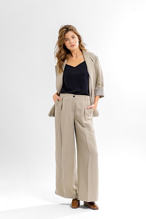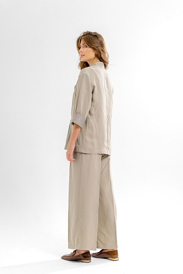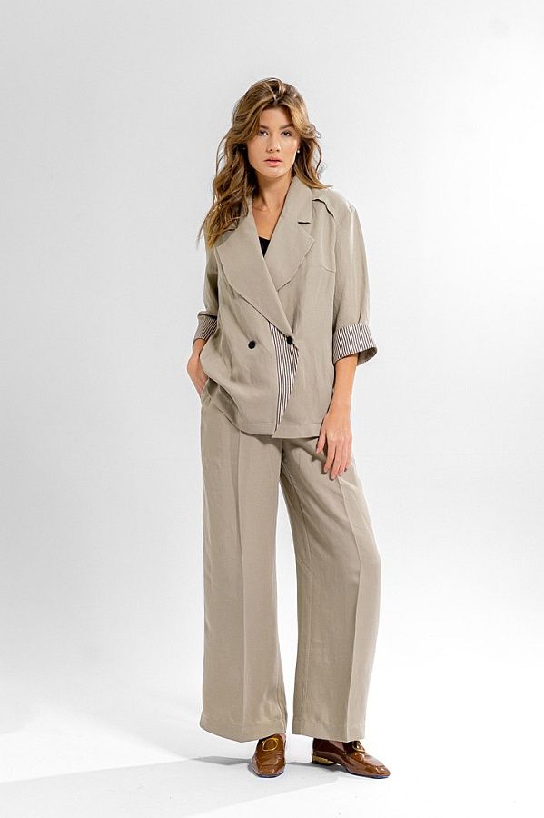 Материал: Жакет и брюки: Вискоза-74%, лен-26%; Топ: Вискоза-63%, ПЭ- 34%, спандекс-3%
