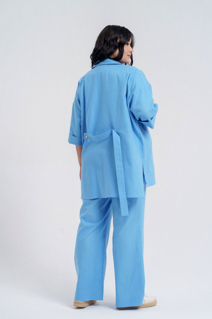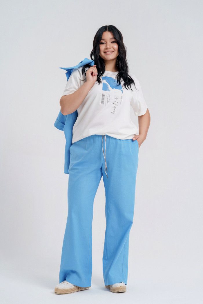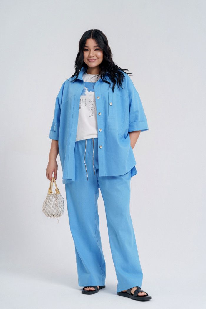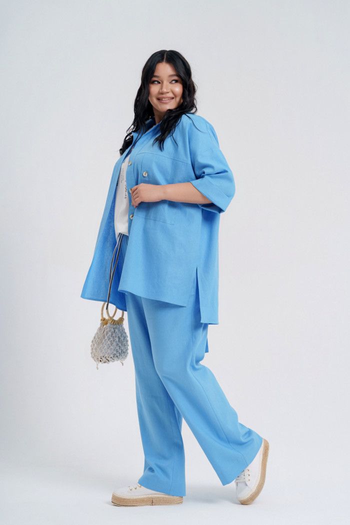 Материал: Блуза и брюки: Вискоза-45%, Лен-55%, Блуза: Хлопок-97%, спандекс-3%.