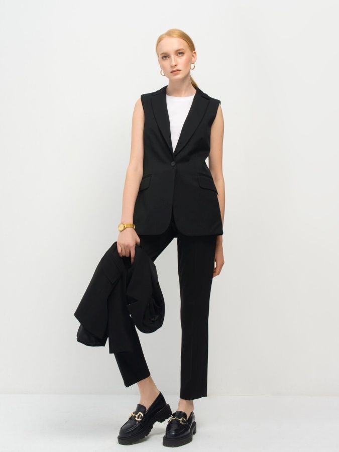 Модель | Брюки зауженные книзу, длиной 9/10.