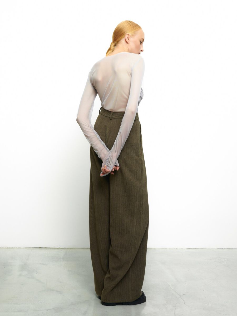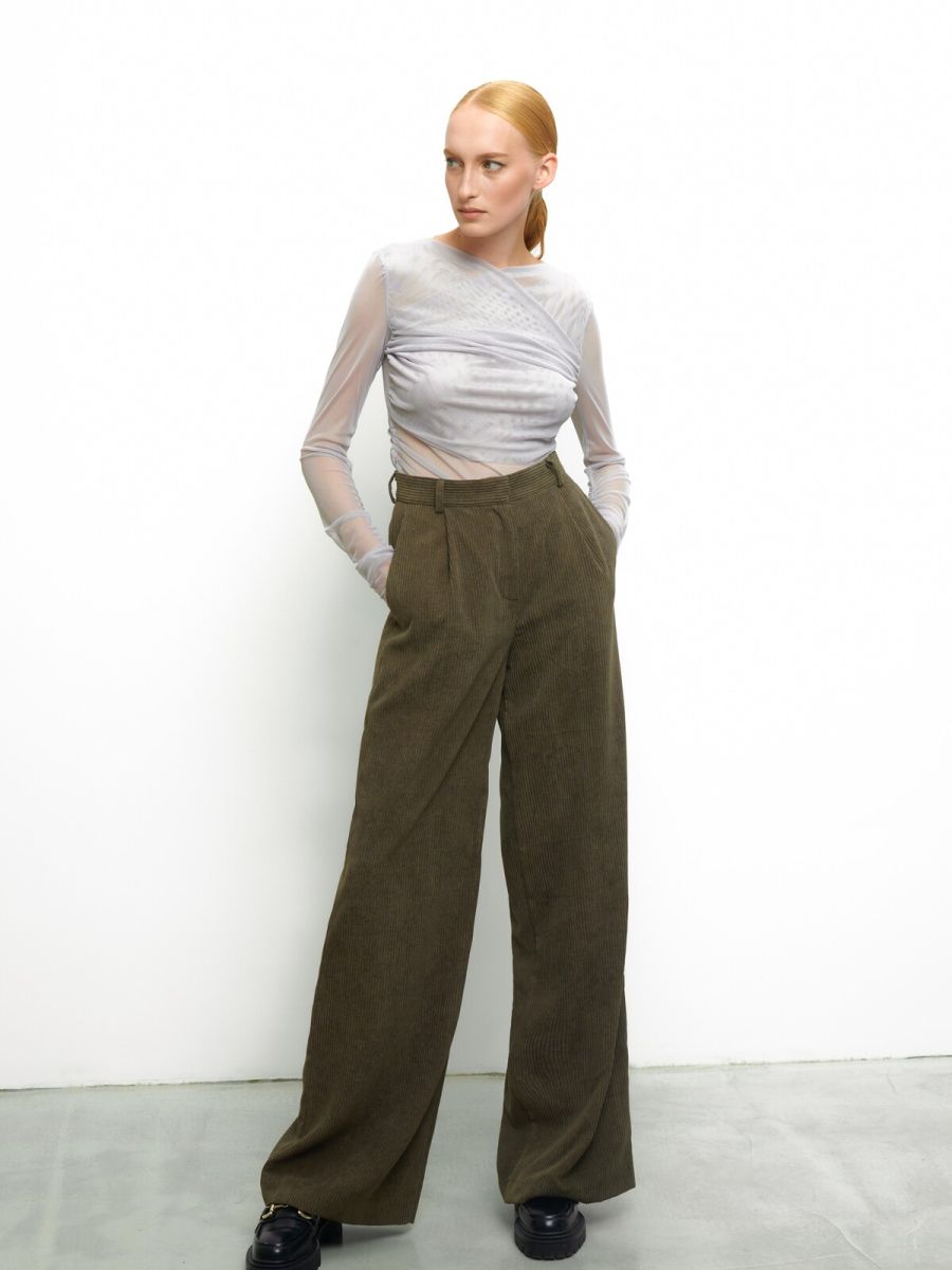 Детали | Средняя посадка. На передних половинках карманы с отрезным бочком и защип. Застежка-гульфик на молнию. Пояс шириной 4 см.