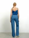 Детали | Средняя посадка. На передних половинках карманы с отрезным бочком. Застежка - гульфик на молнию и пуговицу. Пояс шириной 4 см. На задних половинках кокетка и накладные карманы.