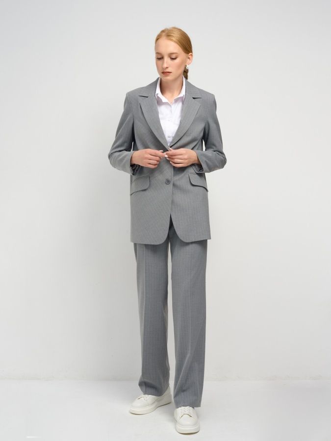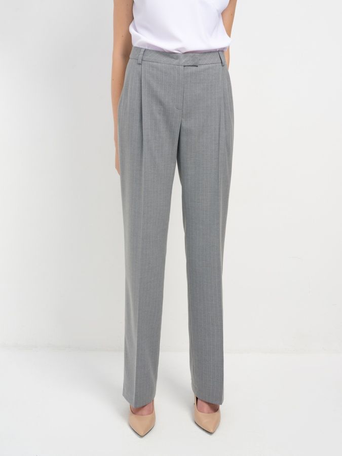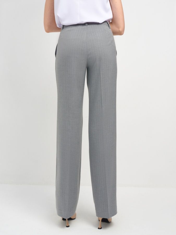 Детали | Средняя посадка. На передних половинках карманы с отрезным бочком, защип и вытачка. Застежка-гульфик на молнию. Пояс шириной 3.5 см.