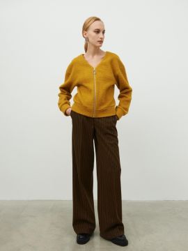Брюки широкие «Палаццо» Высокая посадка. На передних половинках карманы с отрезным бочком и складкой. Застежка - гульфик на молнию. Пояс шириной 4 см со шлевками.
