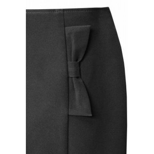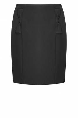 Классическая, немного выше колена, модель зауженного книзу силуэта. В продольные рельефы вставлена эффектная имитация клапанов карманов в виде банта.Длина-50см.