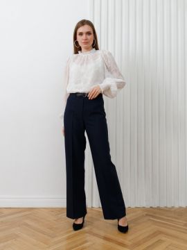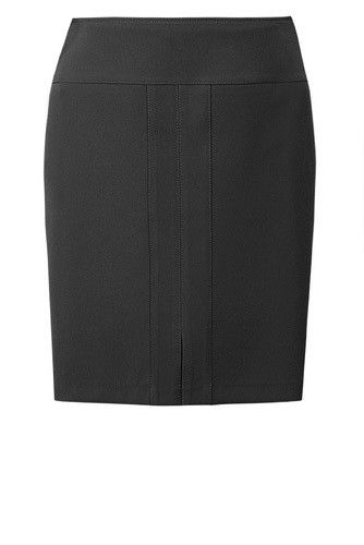 Классическая модель с небольшим разрезом спереди и обрамляющими его вертикальными полосками, удлиняющими силуэт.