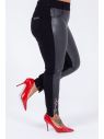 Модные брюки из эко кожи.. Удобный пояс на резинке. На нижней части штанины надпись. Размерный ряд с 46 по 64.