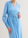 Детали | С длинным рукавом. Низ рукава оформлен длинными защипами «наружу». Горловина V-образная. На полочках пришивная планка с разрезом внизу платья. Дополнительный пояс на двух кольцах.