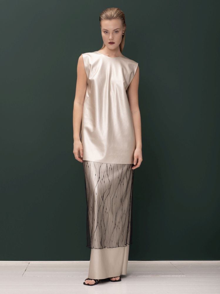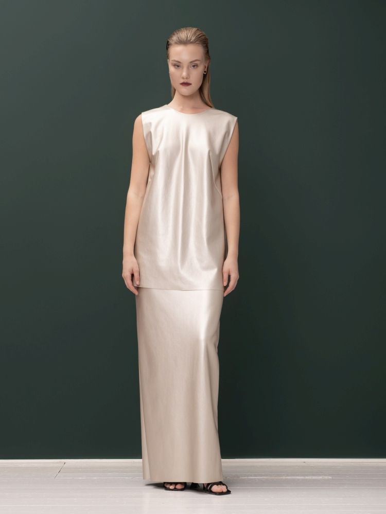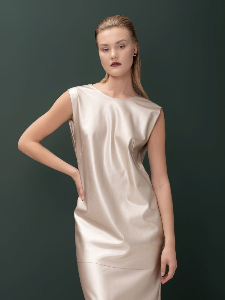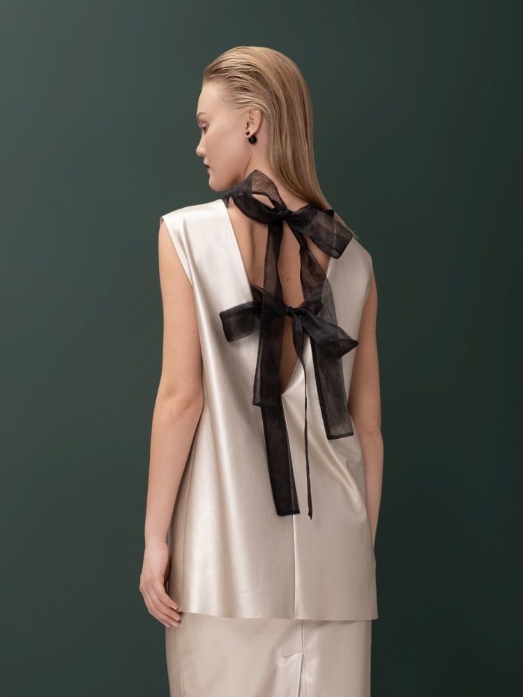 Жилет-туника из экокожи. На подкладе с V-образном вырезом на спине и двумя бантами из органзы.