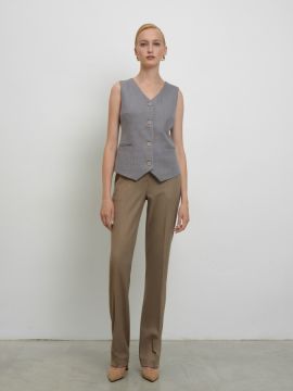 Вырез горловины круглый «лодочка», V-образный вырез спереди, рукав длинный, цельно кроёный, отрезное по линии талии, юбка 4-х клинка «миди», без карманов.