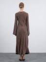Платье силуэта – А. С длинным рукавом клёш. Вырез горловины круглый. Застежка сзади на петлю с пуговицей.