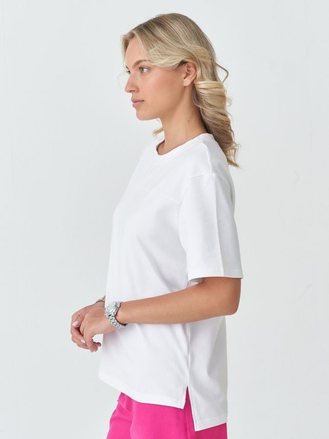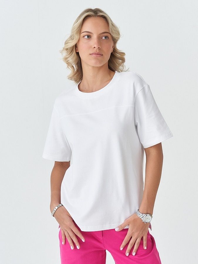 Футболка из хлопка высокого качества с кокеткой по переду и разрезами по бокам.