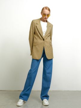 Брюки женские прямого силуэта, с боковыми карманами. Пояс на широкой эластичной тесьме, перестроченный посередине. Высота пояса 5,0см в готовом виде.