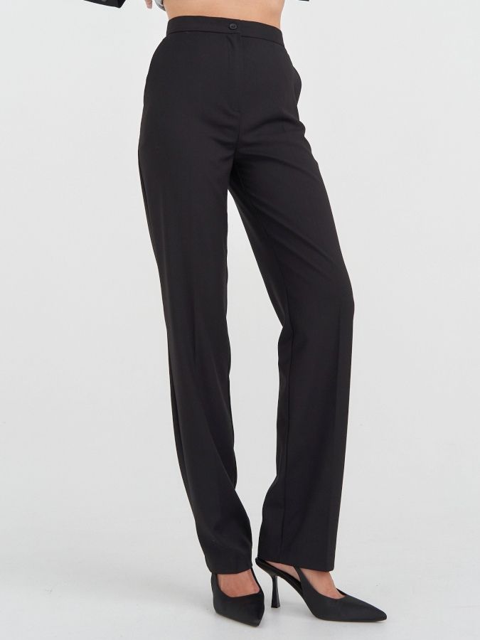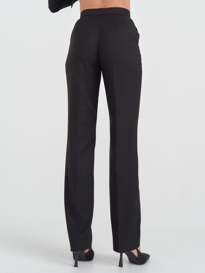 2940401 Брюки прямые с разрезами по низу передних половинок, черные